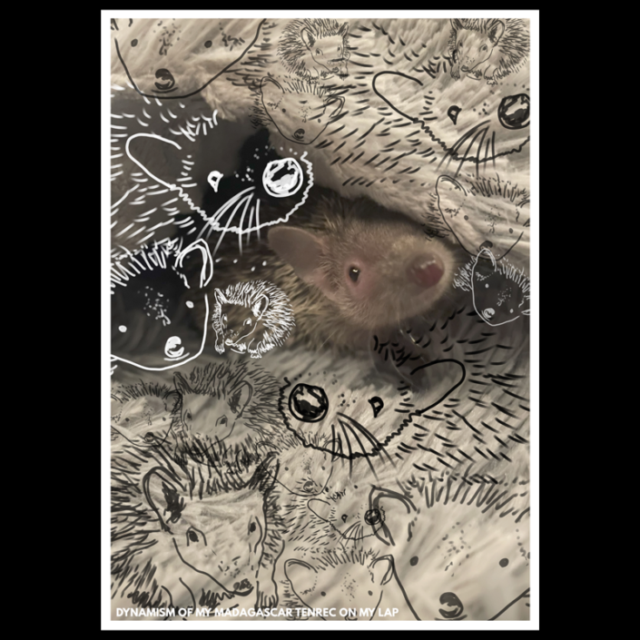 The poster model – madagascar tenrec Jorek Byrnison – artist’s sweetheart pet.