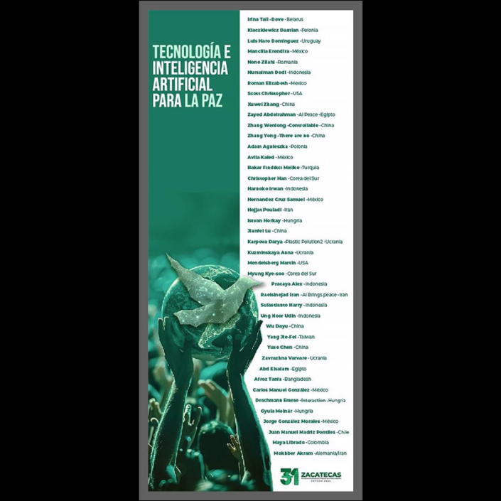 - International Poster Exhibition ‘Technology & Artificial Intelligence for Peace’ – Plazuela Miguel Auza, 10.2024, Zacatecas, MEXICO