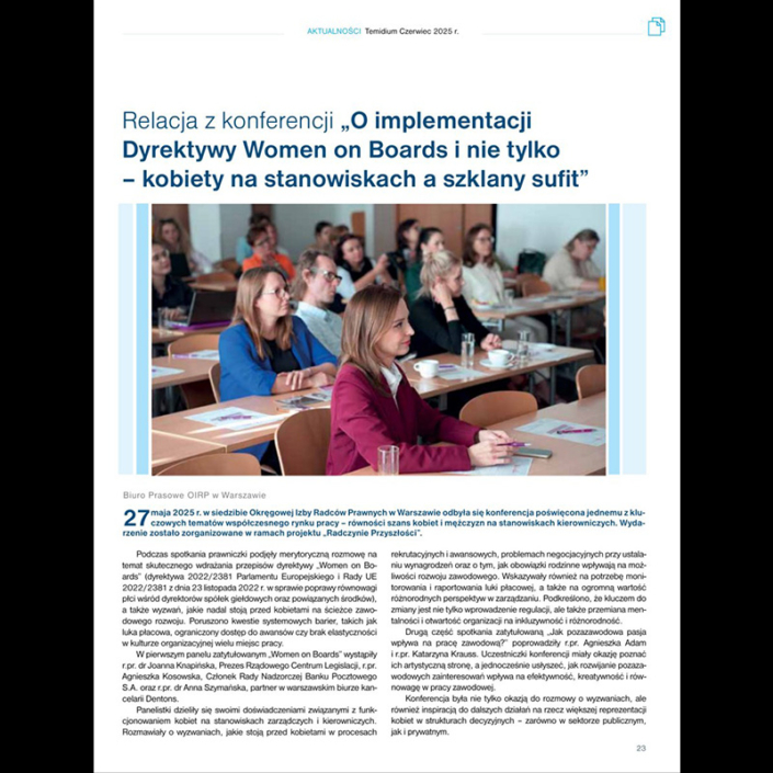 - Presentation of the artistic career and works during the conference ‘Women attorneys-in-law of the future’ – Warsaw Bar Association of Attorneys-at-Law, 27.05.2025, Warsaw