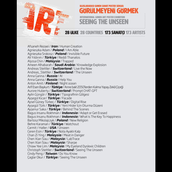 - International Gönen Art Poster Exhibition ‘Seeing the Unseen’ – Gönen Kent Square, 10-17.05.2025, Gönen, TURKEY