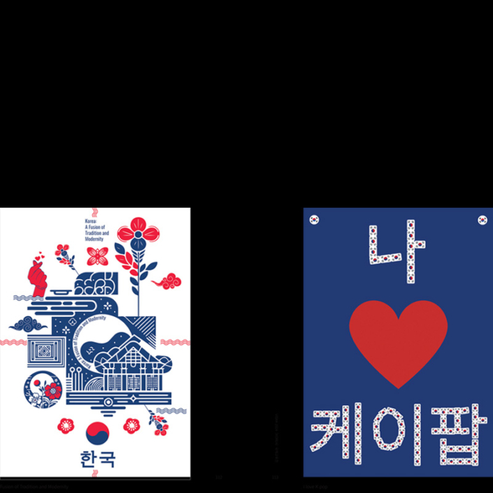 The poster ‘I LOVE K-POP’ was created in 2024 for the exhibition ‘wearing Korea’ reflecting the aesthetics of Hangul and various elements of Korean culture.