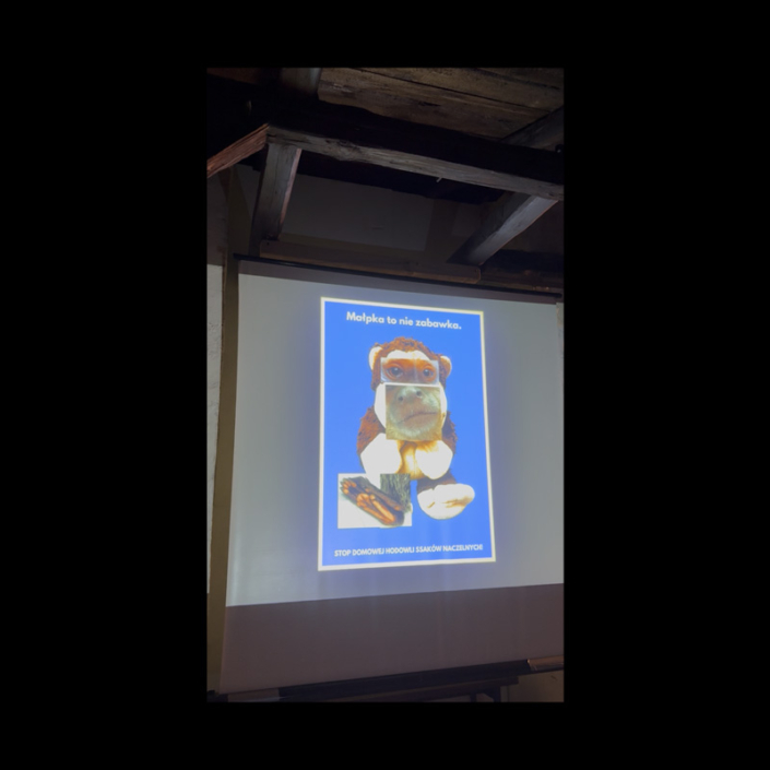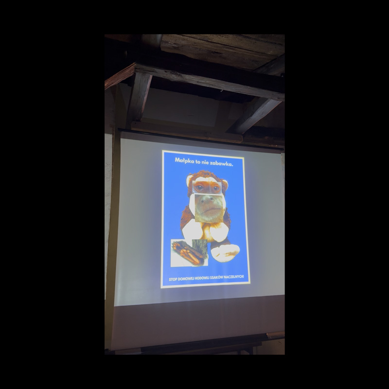 ‘MONKEY IS NOT A TOY’ poster was created to support the veterinary doctors’ and activists’ struggle to improve exotic animals’ breeding conditions and aimed at banning the primates breeding.