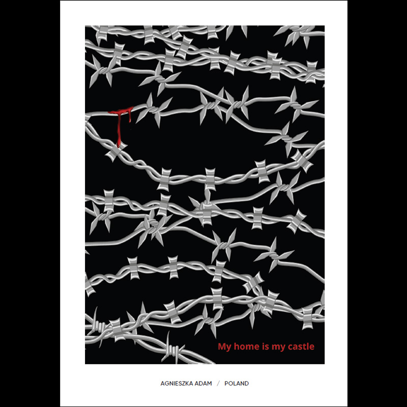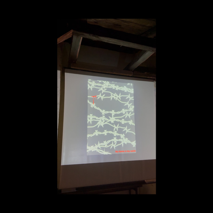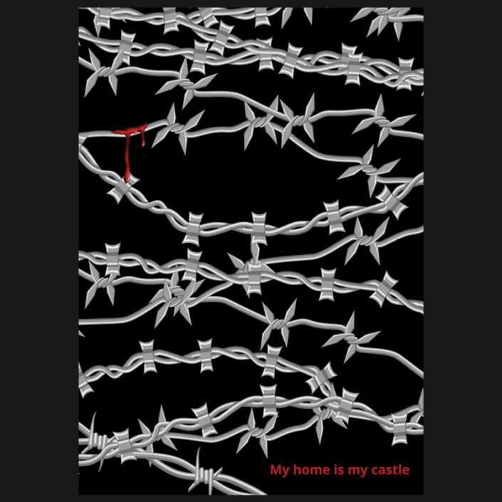'MY HOME IS MY CASTLE’ from 2024 utilizes the barbed wire as a tangible and symbolic manifestation of protecting from the alien and causing immigrants pain.