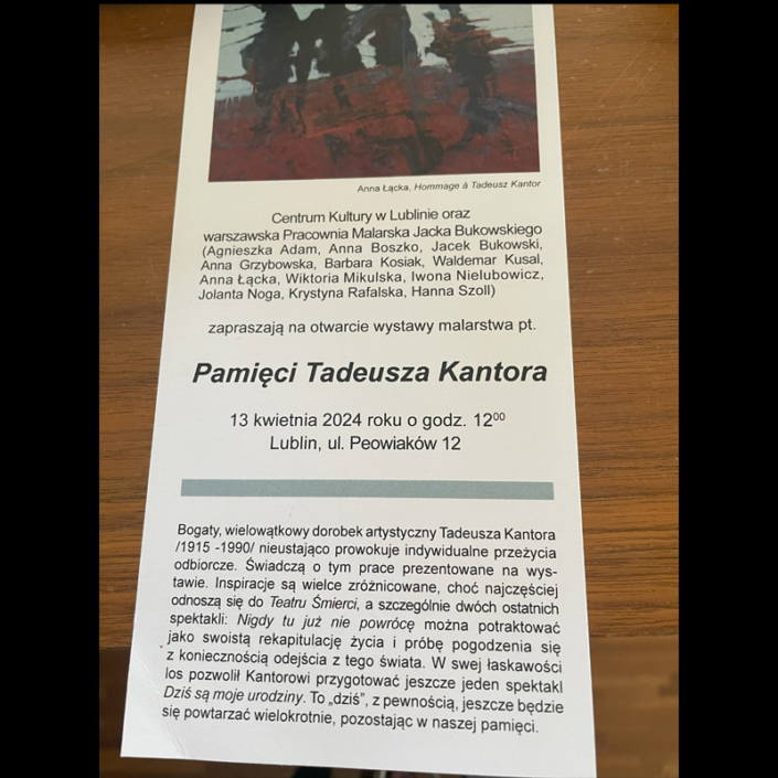 - Cultural Center Lublin (Centrum Kultury w Lublinie) – collective exhibition of Jacek Bukowski Atelier – ‘Tadeusz Kantor, in memoriam / Pamięci Tadeusza Kantora’, 13.04-15.05.2024, Lublin