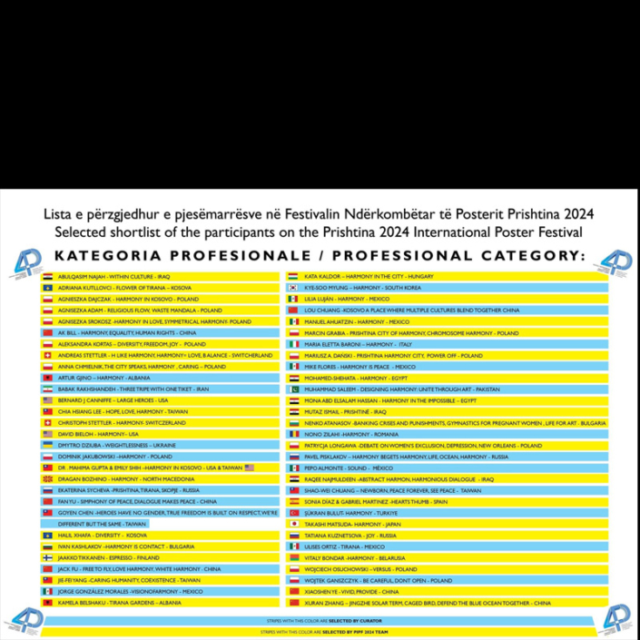 - Prishtina International Poster Festival ‘Harmony’ – Galery FAB, opening 6.01.2025, Tirana, ALBANIA