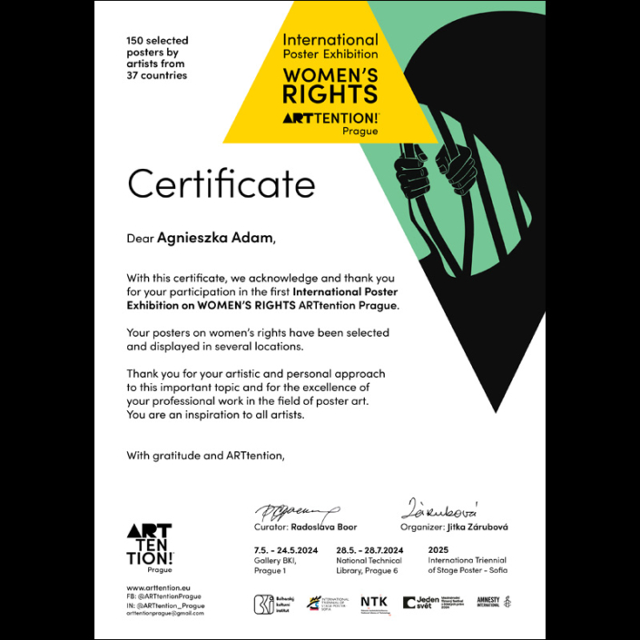 Certificate – International Poster Exhibition Women’s Rights ARTTENTION 2024, the Czech Republic