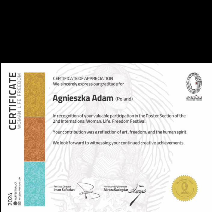 Certificate – 2nd Woman Life Freedom International Festival 2024, Canada