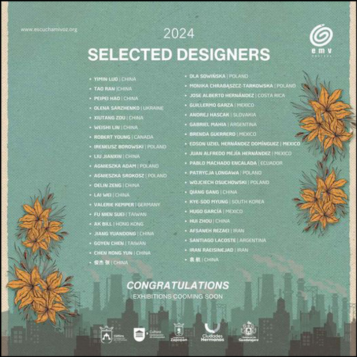 - Escucha mi voz International Poster Contest ‘TERRITORIES’ – MUPAG Museum (in front), 08.2024, Guadalajara, MEXICO